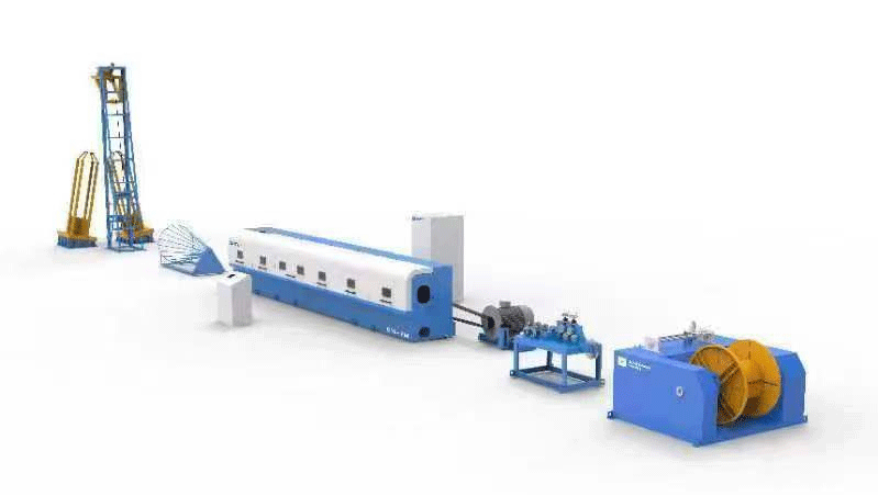 CNC Smart cold-rolled ribbed steel bar production equipment is that the hot rolled coil steel bar is put through the wire automatic turning mechanism and the high line payout, into the descaling mechanism after the powder mechanism to smooth the surface of the steel bar, to form the ribbed steel bar with three sides of the crescence, and then the drawing machine rotates the steel bar into the stress relief mechanism. The steel bar removes part of the internal stress caused by rolling and automatically coils up the line, and the maximum pulling speed of the steel bar is 300-360m/min.